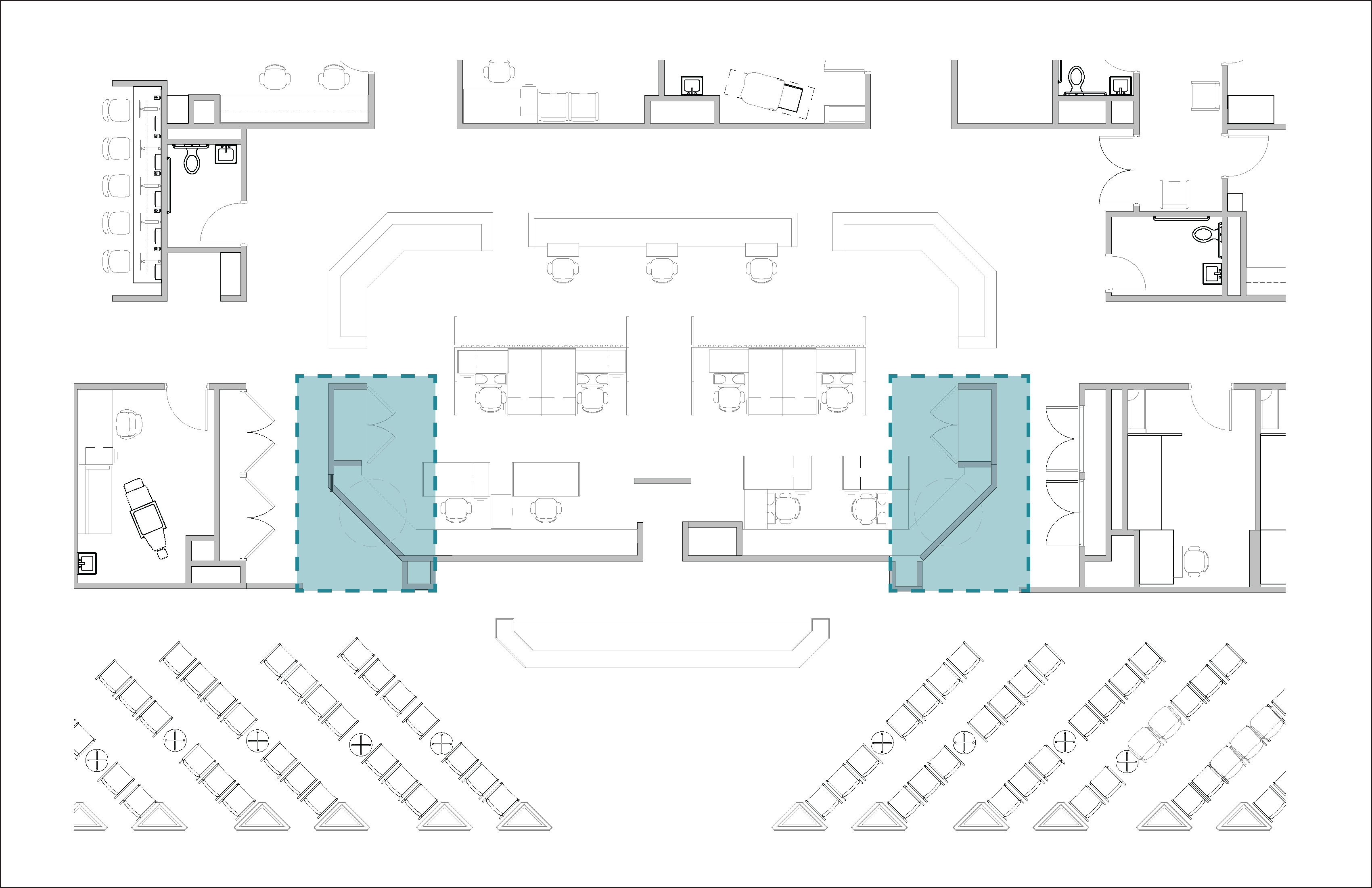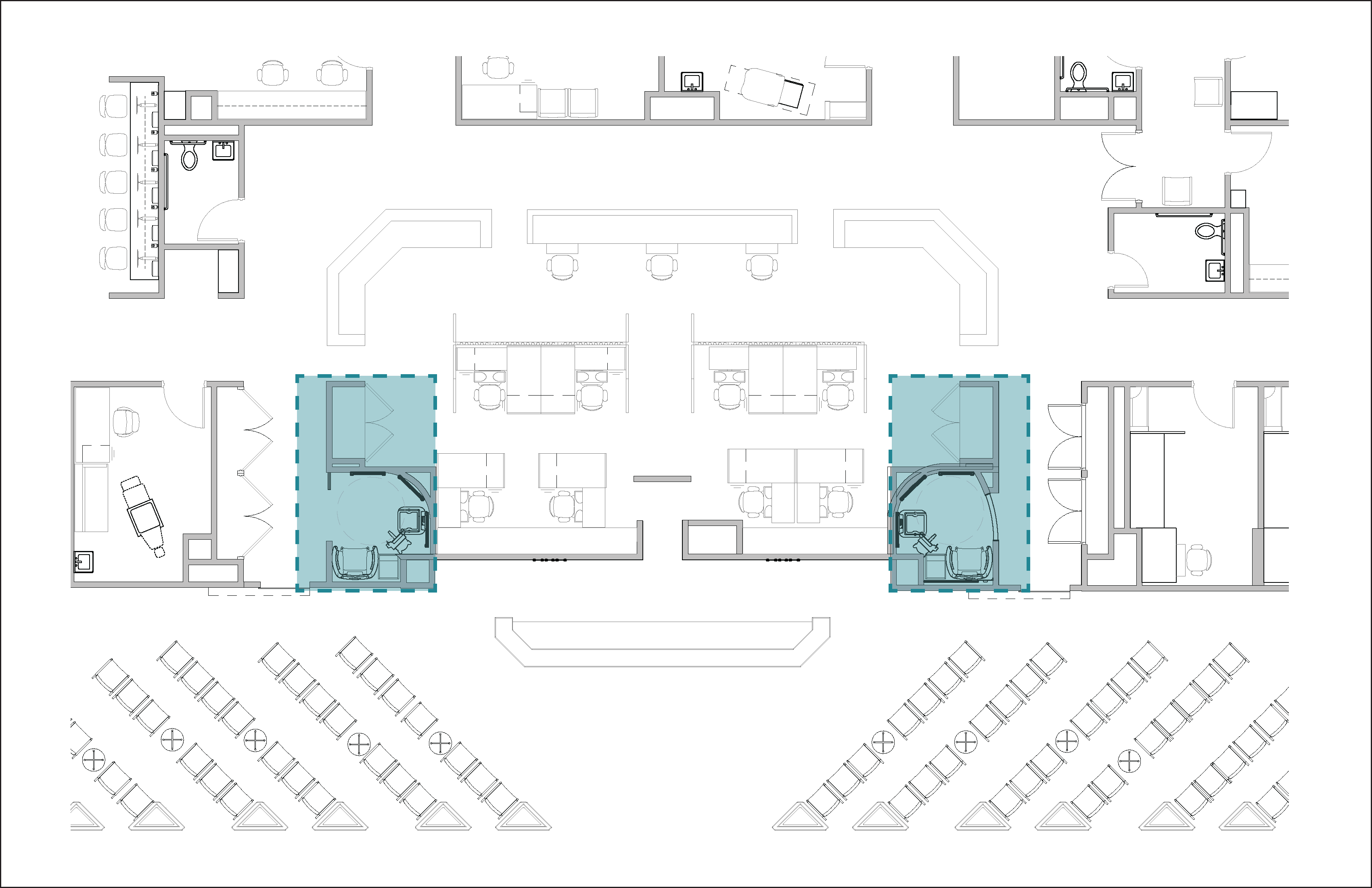 We created two separate vitals stations on this floor by carving out the two front corners of the nurses' workstations.